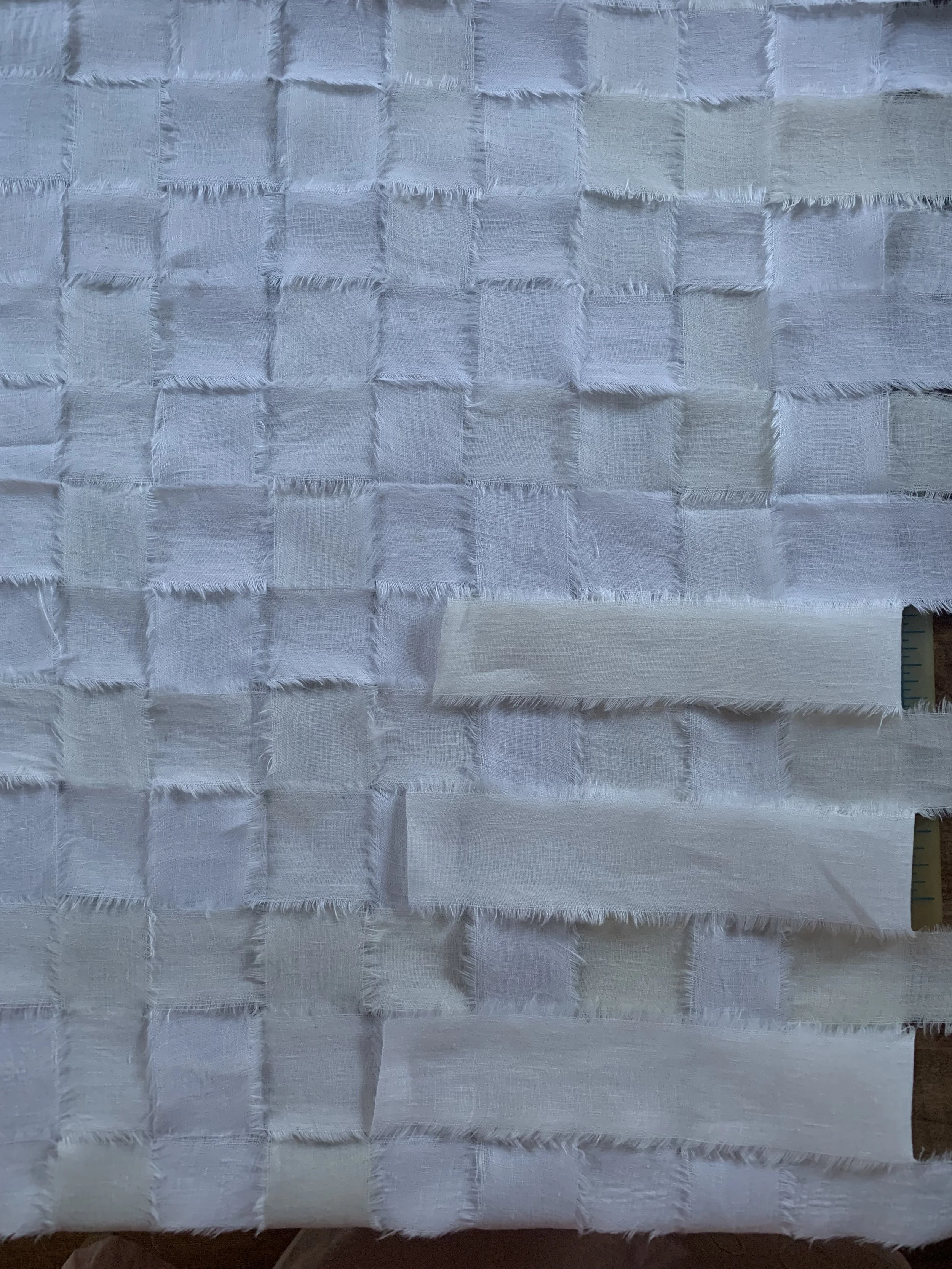 I began by weaving strips of linen from a friend’s old sheets that were too tattered for bedlinen, but had a lot of good fabric left on them.