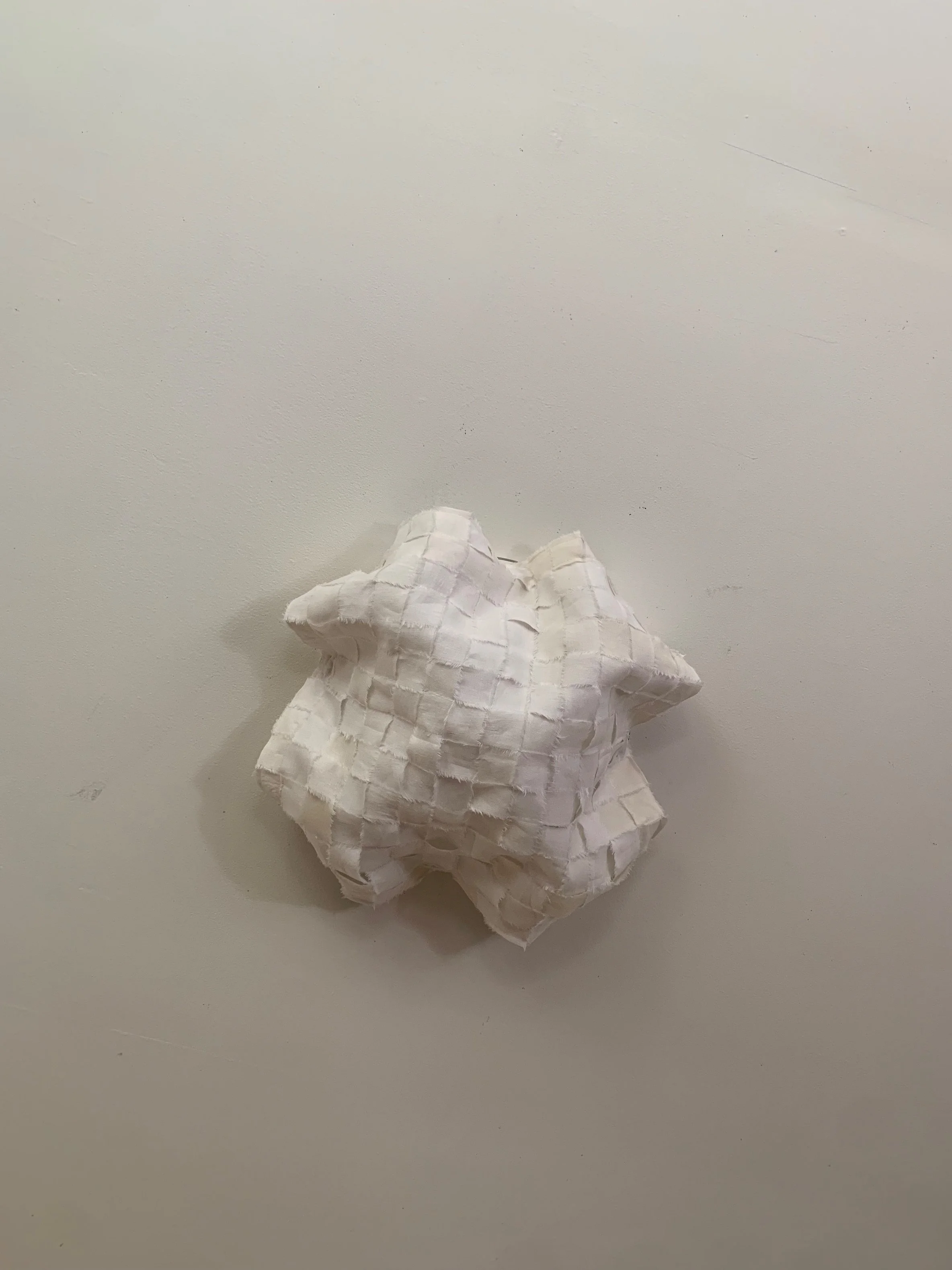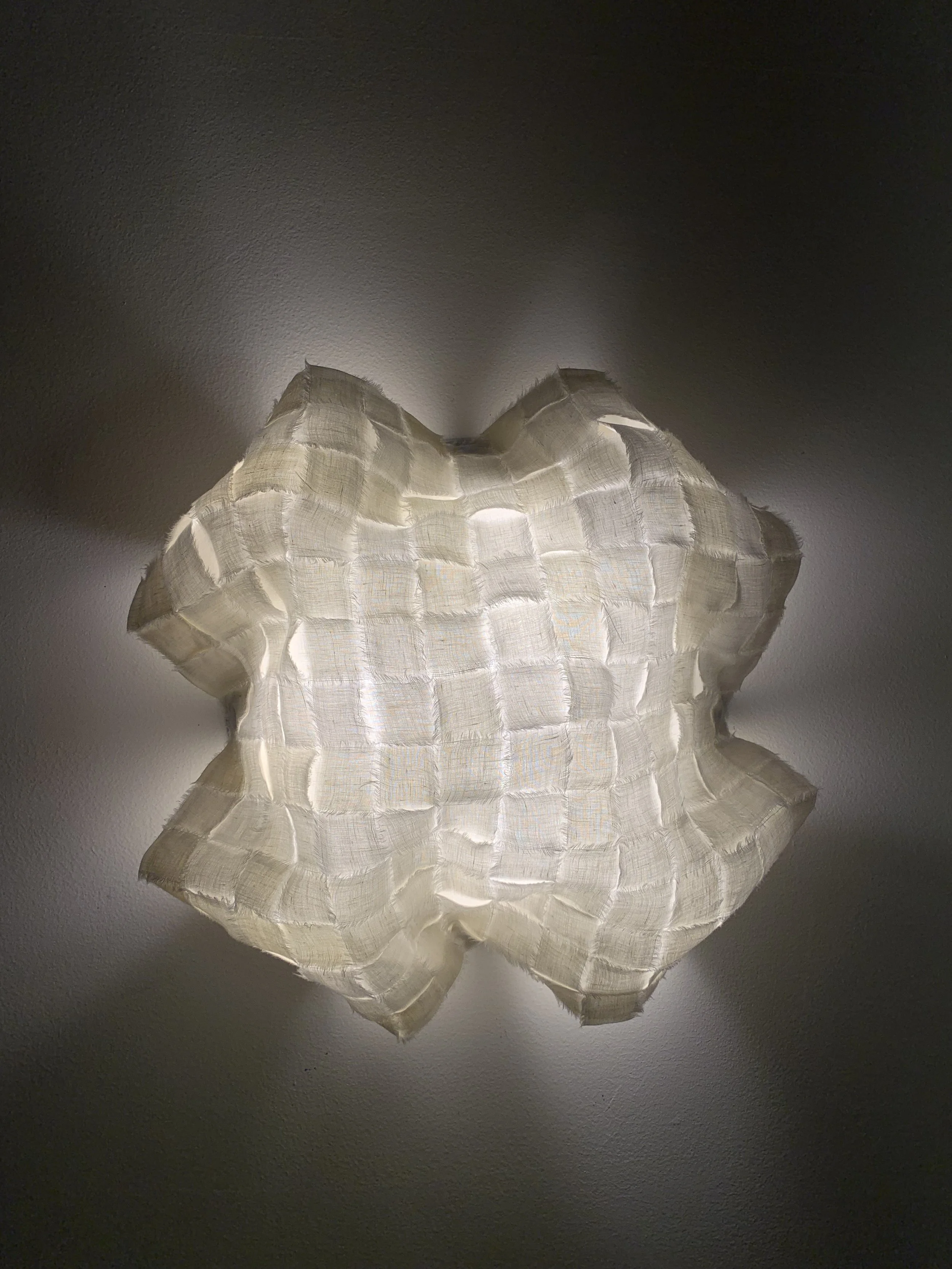 A simple square of woven strips takes on an interesting shape when magnetically attached to the circle of the underlying fixture at 8 points.