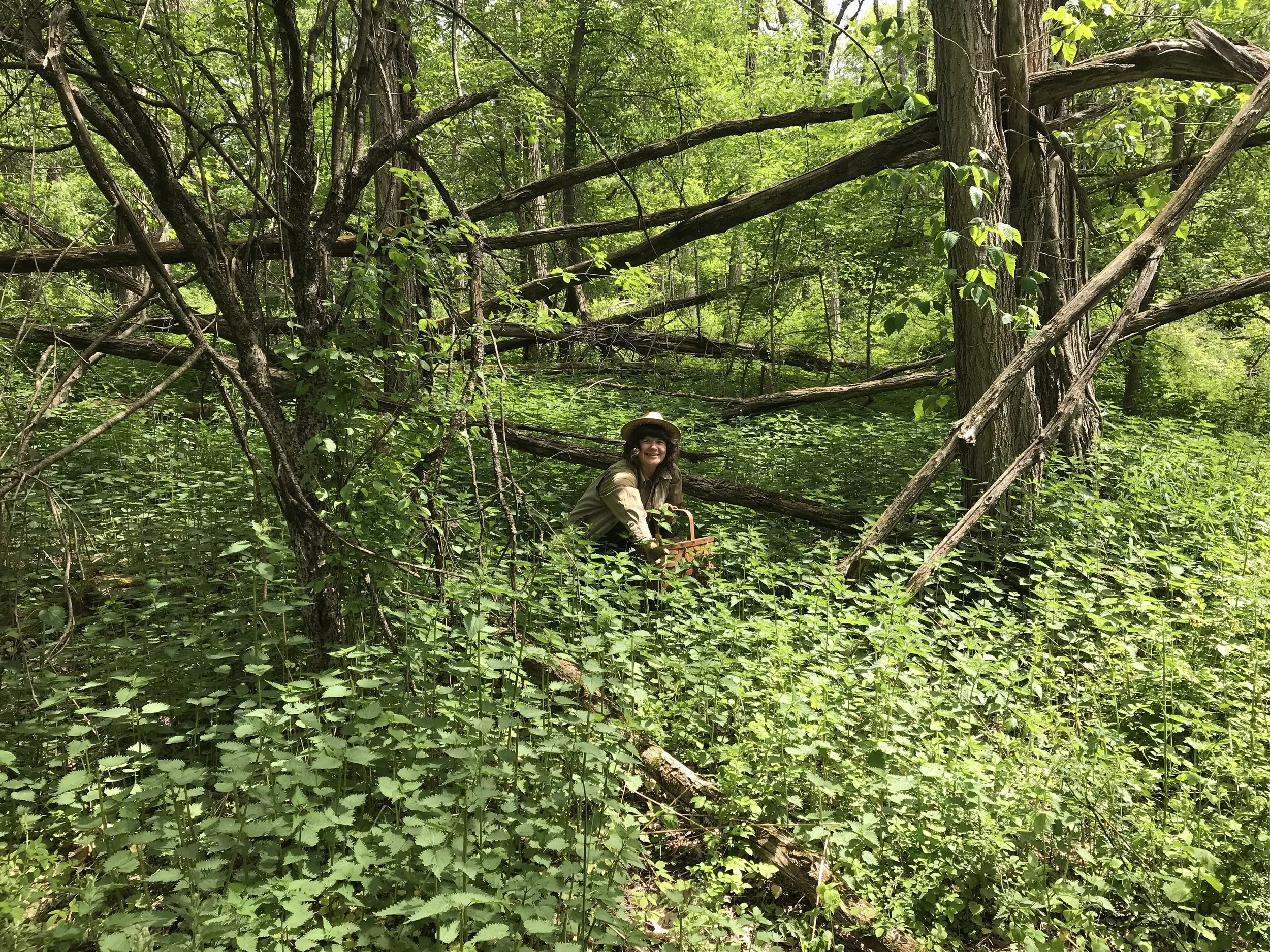 Foraging in an abundant stinging nettle patch. Photo by E. Timpone.